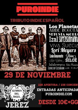 De nuevo en Jerez PuroIndie, el mejor tributo nacional de la música Indie. Éxitos recientes y temas míticos , en un show de mas de dos horas de duración. Si te gustan los festivales , este es tu concierto.